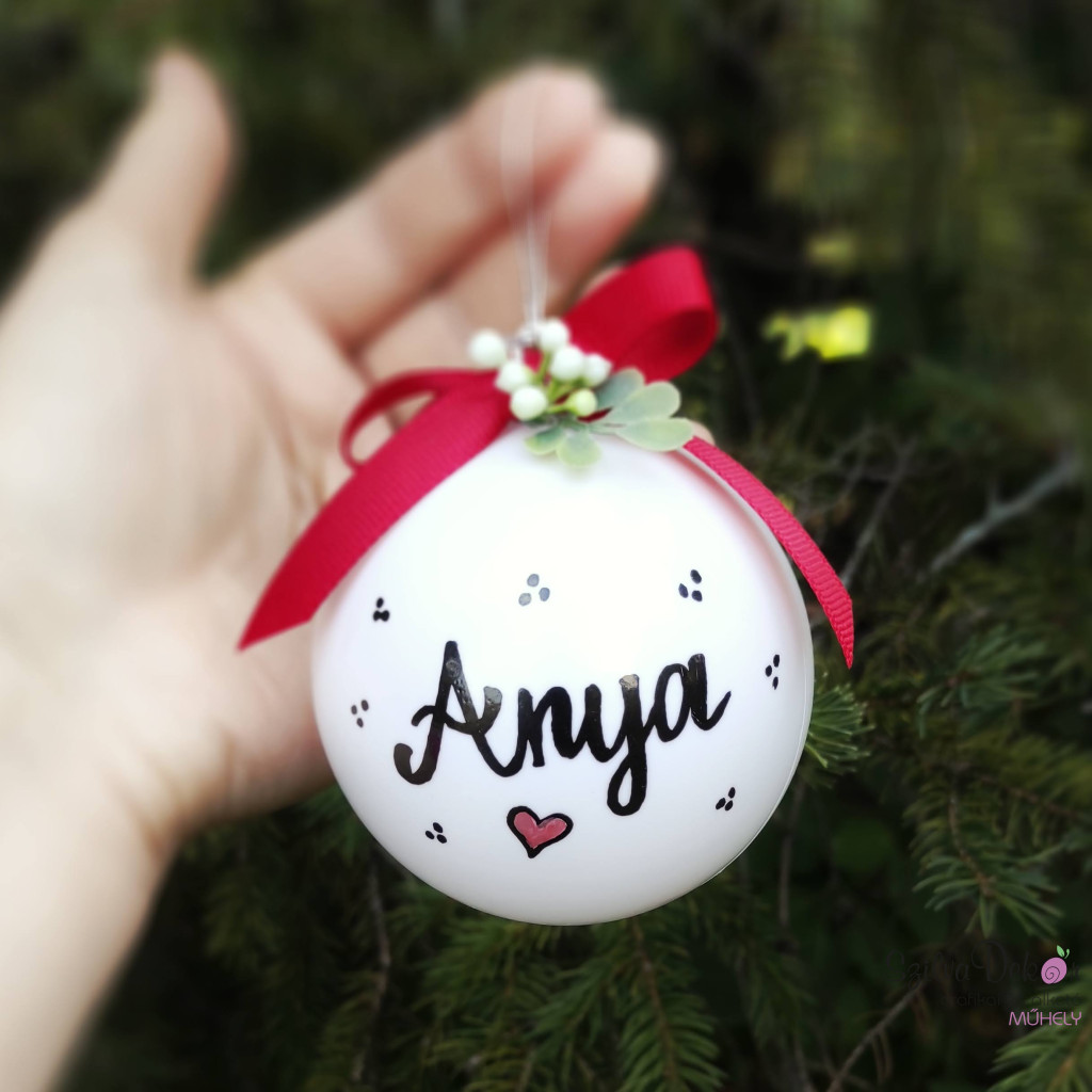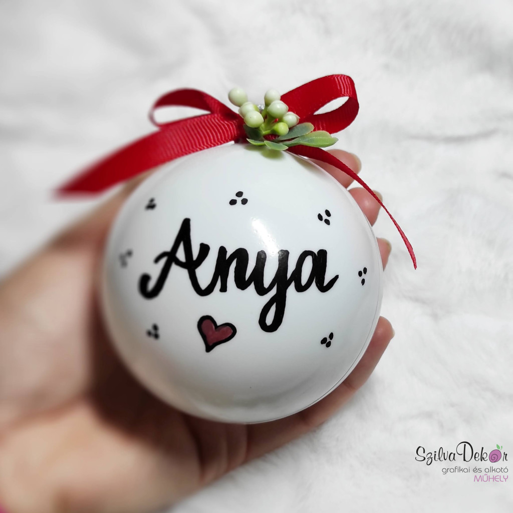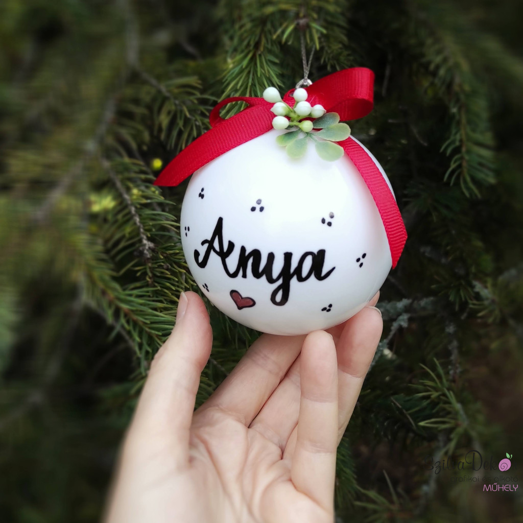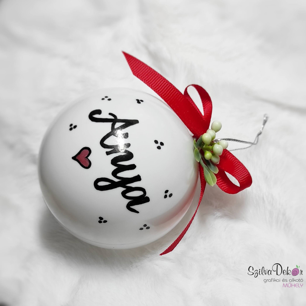 Elsősorban egy-egy név fér ki szépen a gömbre, esetleg rövid mondat (pl. Legjobb Apa) Maximum 10-13 karakterig vállalom a feliratozást.